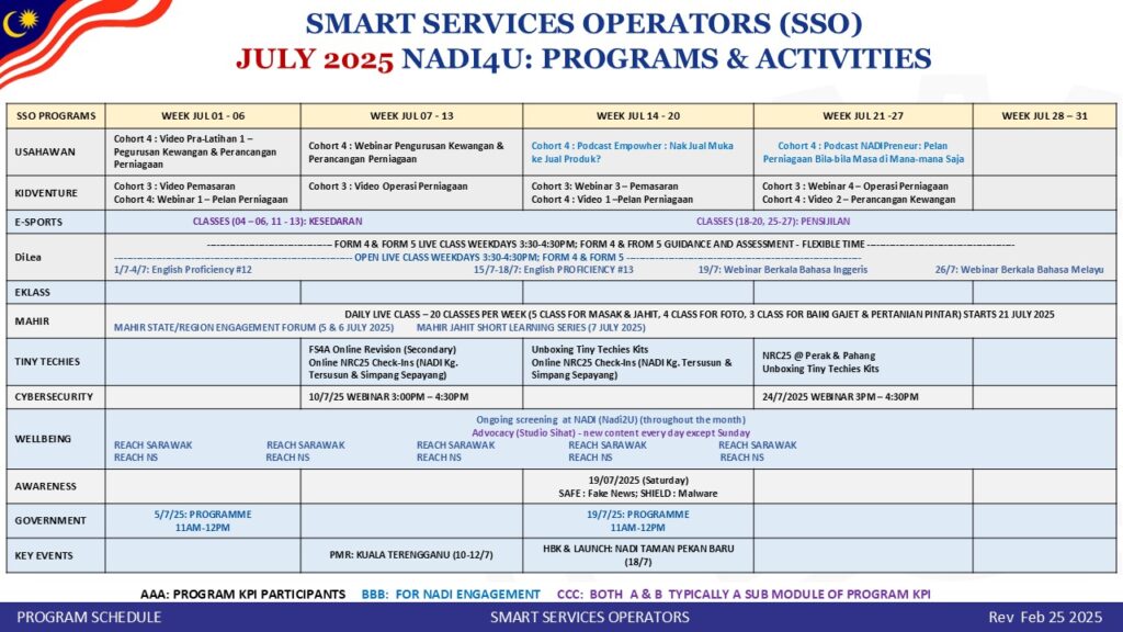 TAKWIM PERKHIDMATAN PINTAR NADI BULAN JULAI 2025