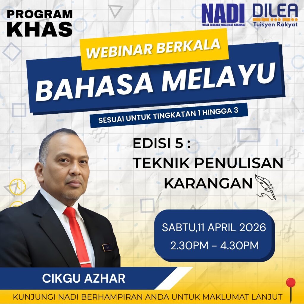 Jangan risau! Jom sertai Webinar Berkala Bahasa Melayu – Edisi 5 yang akan membantu anda menguasai teknik penulisan karangan dengan lebih mudah, jelas dan berkesan! 📝✨